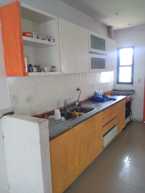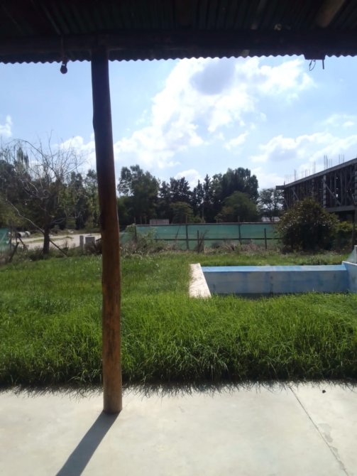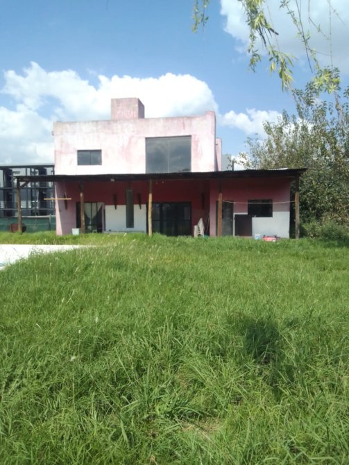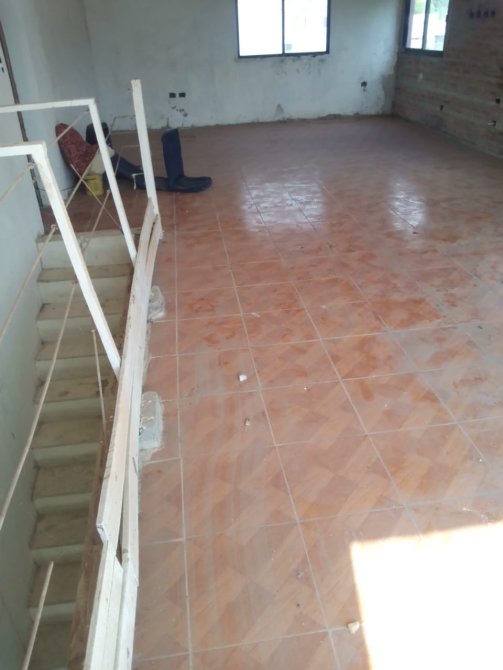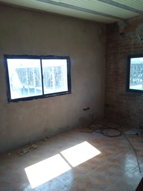 Vivienda construída en 2 plantas, con detalles de terminación, en mampostería 0,15, entrepiso y techo de losa; area semi cubierta "Cochera", techo de chapa de zinc de 45 m2.