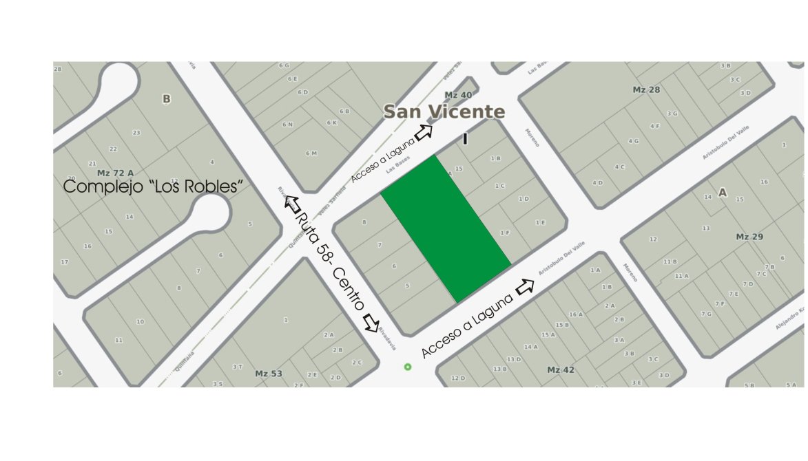 Dicha Finca se ubica con frente a la calle Aristóbulo del Valle número 37 entre las de Rivadavia (Importante Acceso desde Ruta Prov. 58 al centro de la ciudad) y calle Mariano Moreno de la localidad de San Vicente.-A 500 mtrs. de Plaza Moreno (Centro Cívico).-
