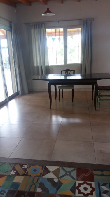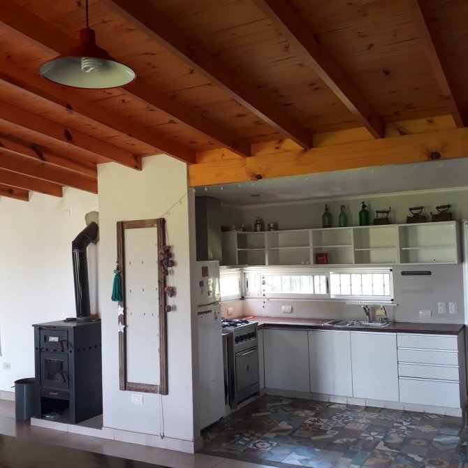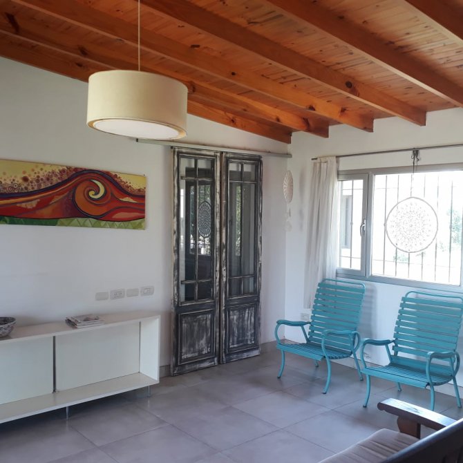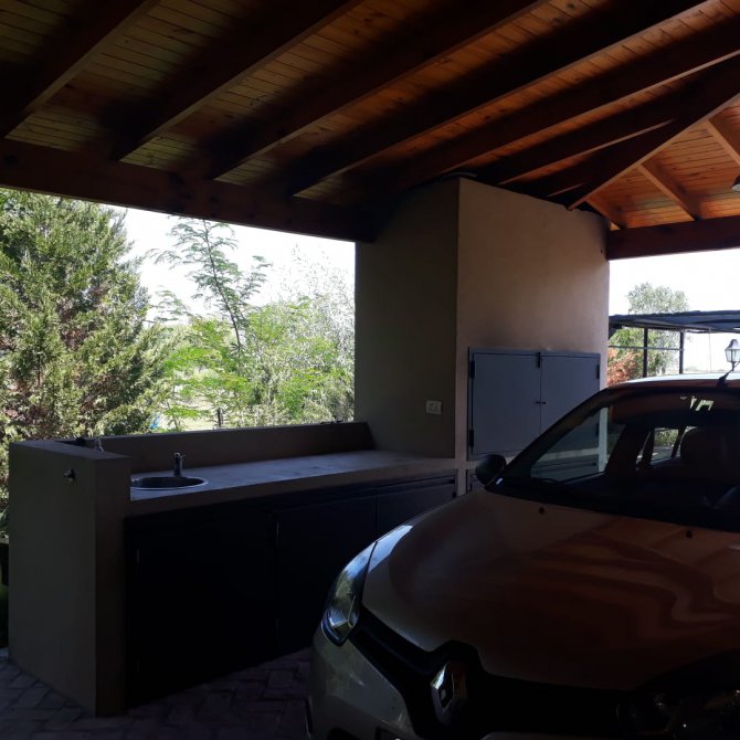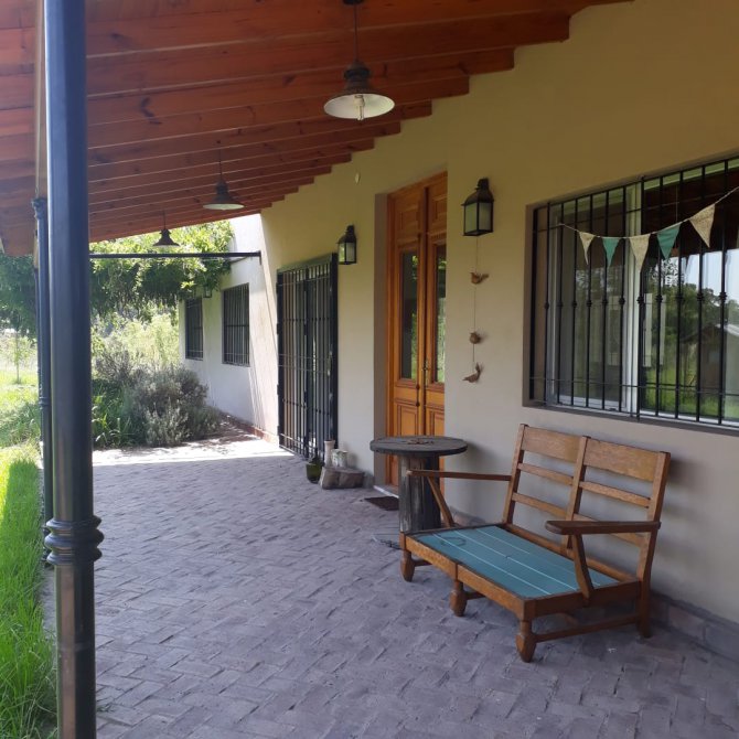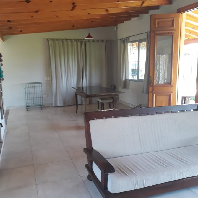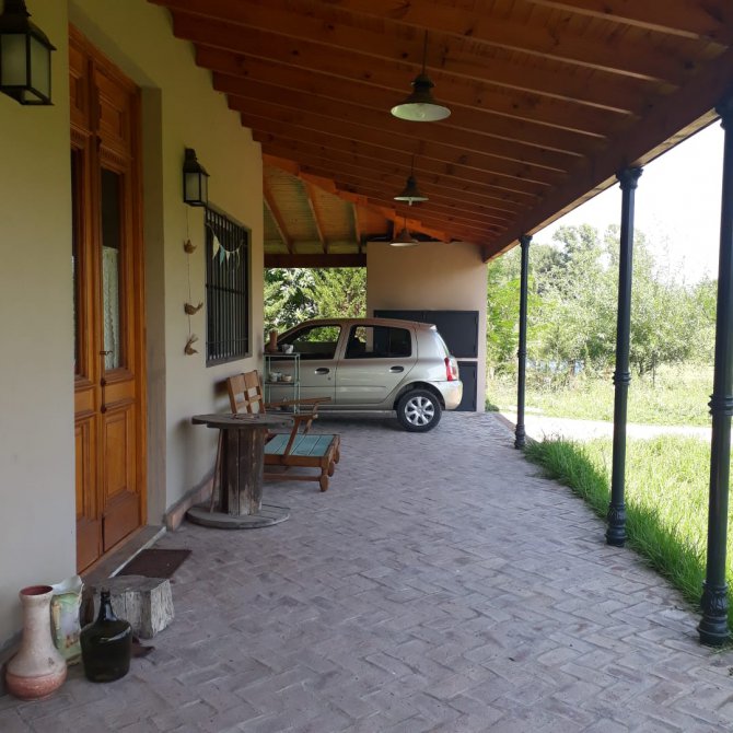 Casa muy luminosa, compuestsa de: 2 dormitorios, amplio baño con bañera, living-comedor-cocina, lavadero, cochera con parrilla y mesada con pileta, galería al frente. Perforación de agua y digestor de desechos cloacales. Forestación y alambrado perimetral.