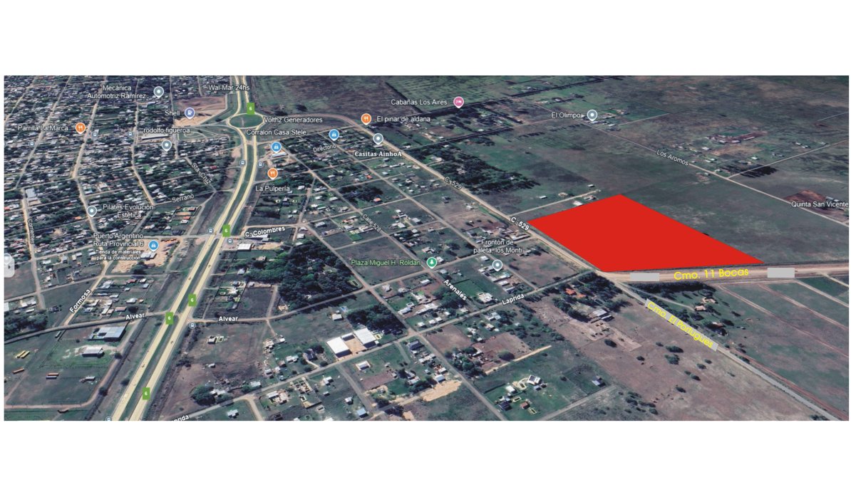 EL INMUEBLE SE ENCUENTRA SIN MEJORAS, CON ALAMBRADOS PERIMETRALES EN BUEN ESTADO, Y A 680 MTRS DE RUTA PROVINCIAL 6 (AUTOVIA).