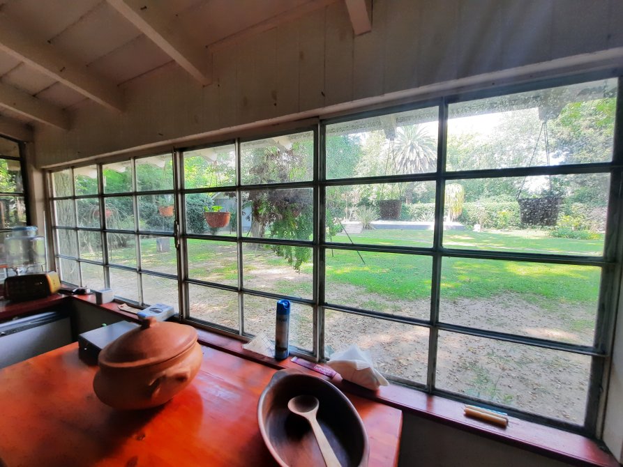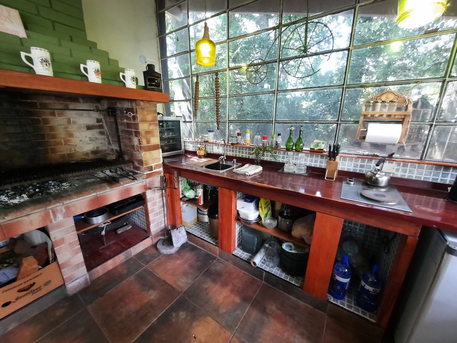 Quincho de Techo de Tejas: 9 x 3,5, con parrilla en su interior; mesada con bacha, agua fría y caliente; salamandra, y toilette; vidriado en todo su frente con excelente vista al parque.-“Todo Impecable.”