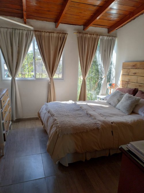 Baño amplio , dormitorio principal con aire acondicionado frio calor , dormitorio pequeño.